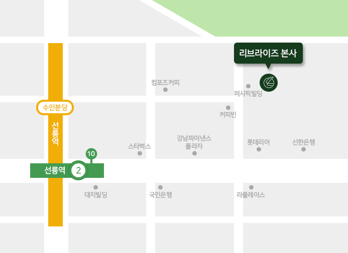 2호선, 수인분당선 선릉역 10번 출구 500M(도보 7분 이내)